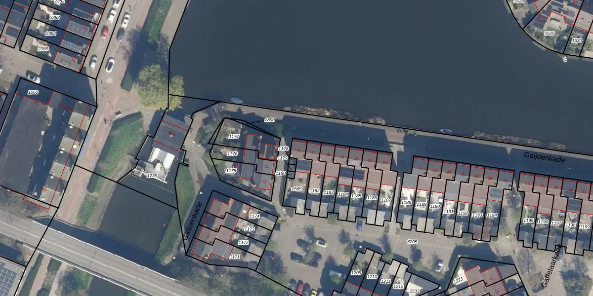 Het perceel waarop Galjoenkade 15 staat heeft een oppervlakte van 149 m². Dit is een middelgroot perceel. De perceeloppervlakte wordt geregistreerd door het Kadaster. Gedetailleerde informatie over de maten van dit perceel kunt u vinden in het rapport Kadastrale kaart met maatvoering van Galjoenkade 15.
