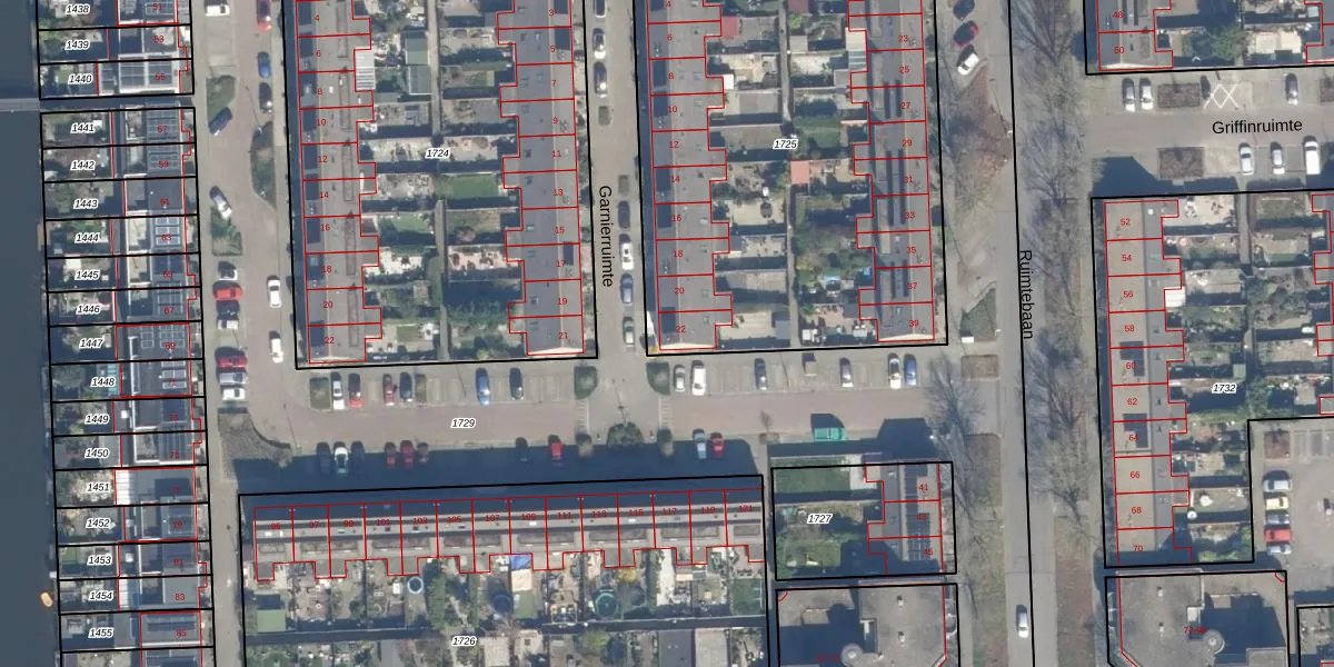 Het perceel waarop Garnierruimte 22 staat heeft een oppervlakte van 2763 m². Dit is een zeer groot perceel. De perceeloppervlakte wordt geregistreerd door het Kadaster. Gedetailleerde informatie over de maten van dit perceel kunt u vinden in het rapport Kadastrale kaart met maatvoering van Garnierruimte 22.