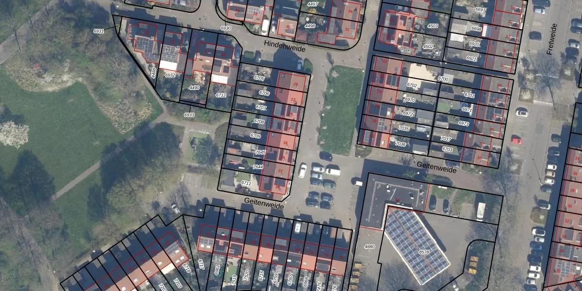 Gebruik de zoekbalk of klik op een perceel voor informatie over de adressen binnen dit perceel.