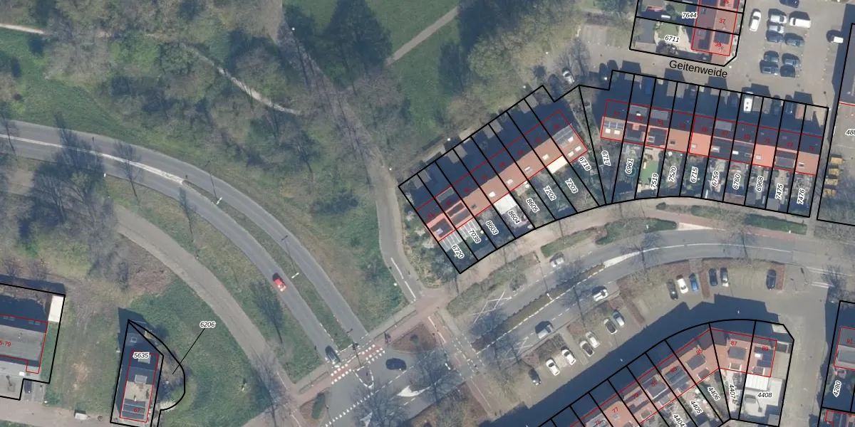 Gebruik de zoekbalk of klik op een perceel voor informatie over de adressen binnen dit perceel.