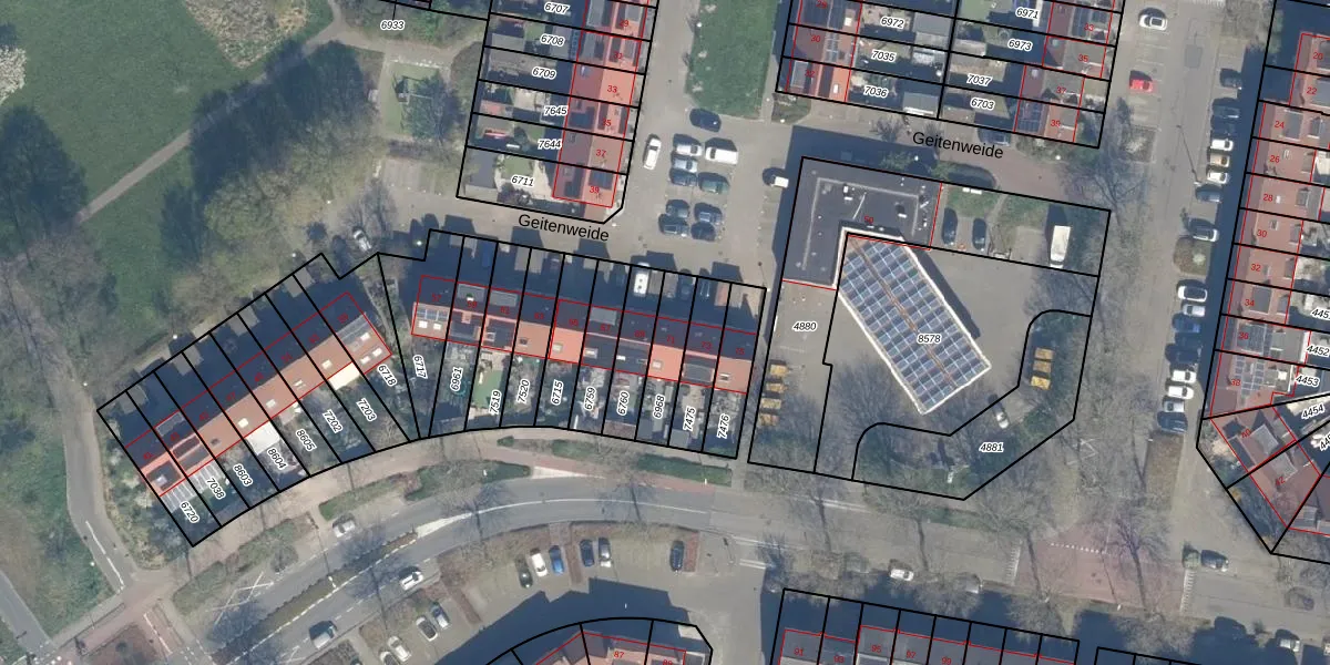 Geitenweide 71 is gelegen op kadastraal perceel ZWD01B6968. Deze kadastrale aanduiding is uniek en wordt gebruikt door het Kadaster om eigendomsrechten en andere zakelijke rechten vast te leggen. Het perceel maakt onderdeel uit van de kadastrale gemeente Zegwaard.