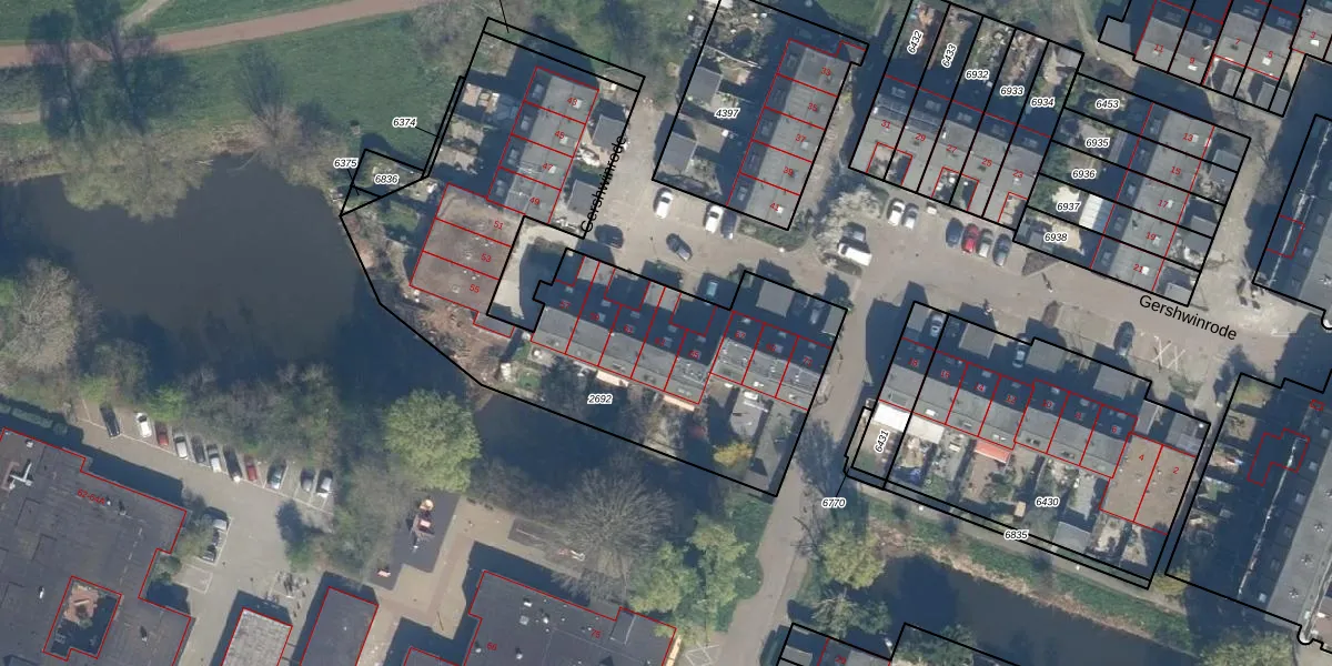 Het perceel waarop Gershwinrode 63 staat heeft een oppervlakte van 2254 m². Dit is een zeer groot perceel. De perceeloppervlakte wordt geregistreerd door het Kadaster. Gedetailleerde informatie over de maten van dit perceel kunt u vinden in het rapport Kadastrale kaart met maatvoering van Gershwinrode 63.