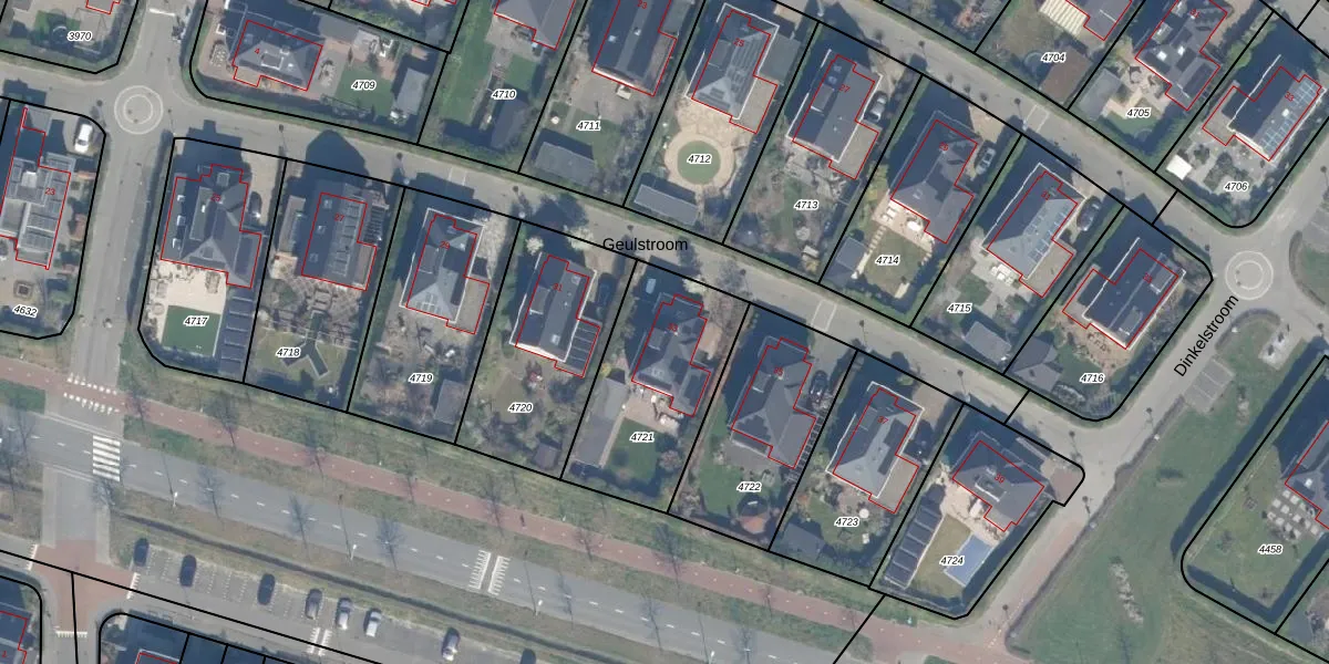 Het perceel waarop Geulstroom 33 staat heeft een oppervlakte van 608 m². Dit is een groot perceel. De perceeloppervlakte wordt geregistreerd door het Kadaster. Gedetailleerde informatie over de maten van dit perceel kunt u vinden in het rapport Kadastrale kaart met maatvoering van Geulstroom 33.