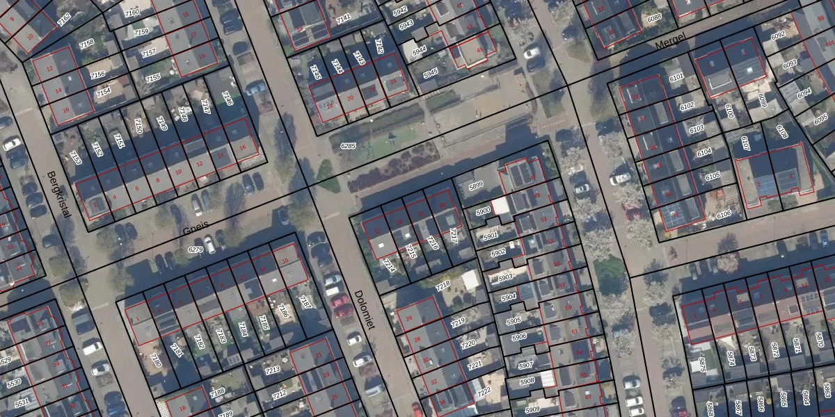Het perceel waarop Gneis 21 staat heeft een oppervlakte van 108 m². Dit is een middelgroot perceel. De perceeloppervlakte wordt geregistreerd door het Kadaster. Gedetailleerde informatie over de maten van dit perceel kunt u vinden in het rapport Kadastrale kaart met maatvoering van Gneis 21.