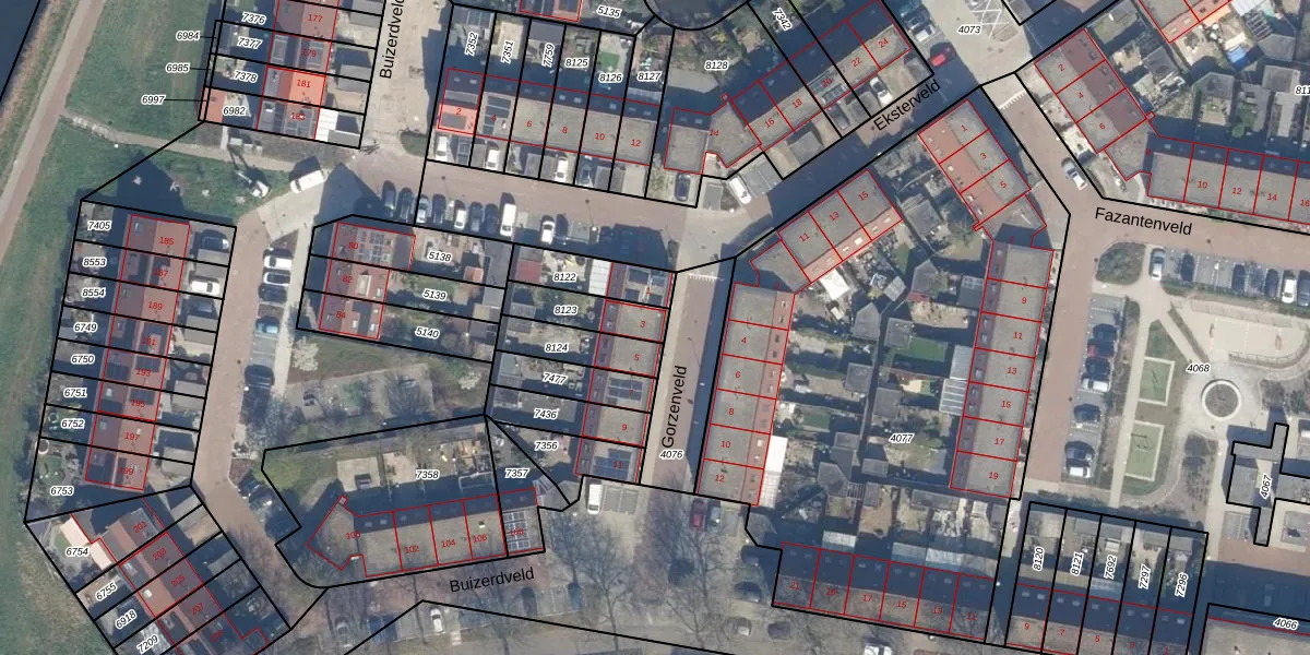 Gebruik de zoekbalk of klik op een perceel voor informatie over de adressen binnen dit perceel.