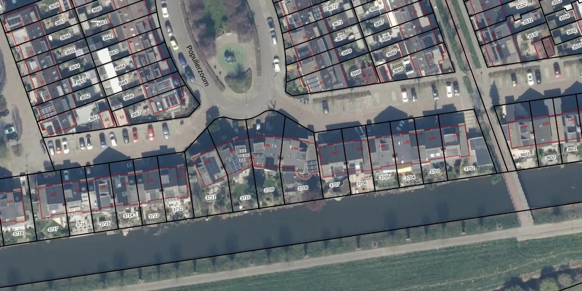 Gebruik de zoekbalk of klik op een perceel voor informatie over de adressen binnen dit perceel.