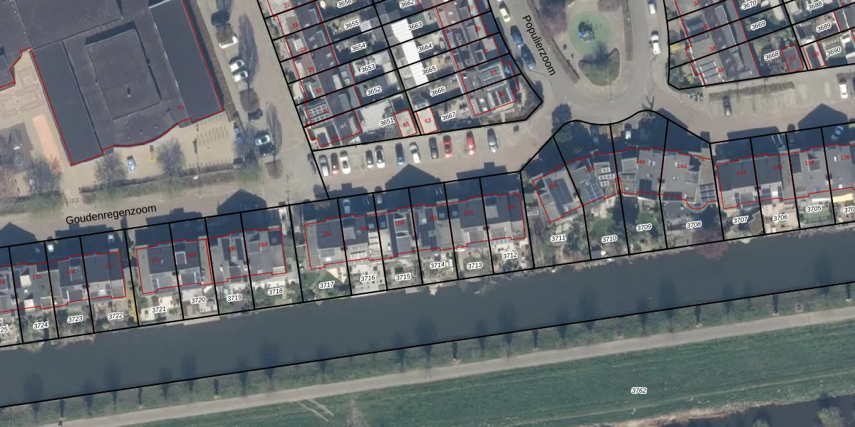 Het perceel waarop Goudenregenzoom 156 staat heeft een oppervlakte van 193 m². Dit is een middelgroot perceel. De perceeloppervlakte wordt geregistreerd door het Kadaster. Gedetailleerde informatie over de maten van dit perceel kunt u vinden in het rapport Kadastrale kaart met maatvoering van Goudenregenzoom 156.