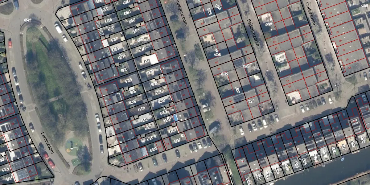 Gebruik de zoekbalk of klik op een perceel voor informatie over de adressen binnen dit perceel.
