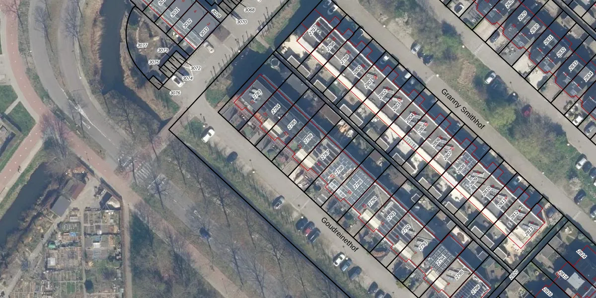 Gebruik de zoekbalk of klik op een perceel voor informatie over de adressen binnen dit perceel.