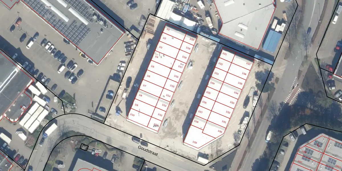Het perceel waarop Goudstraat 1-15 staat heeft een oppervlakte van 5303 m². Dit is een zeer groot perceel. De perceeloppervlakte wordt geregistreerd door het Kadaster. Gedetailleerde informatie over de maten van dit perceel kunt u vinden in het rapport Kadastrale kaart met maatvoering van Goudstraat 1-15.