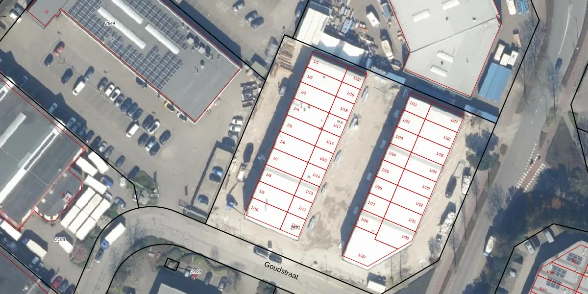 Goudstraat 1-6 is gelegen op kadastraal perceel ZWD01D2571. Deze kadastrale aanduiding is uniek en wordt gebruikt door het Kadaster om eigendomsrechten en andere zakelijke rechten vast te leggen. Het perceel maakt onderdeel uit van de kadastrale gemeente Zegwaard.