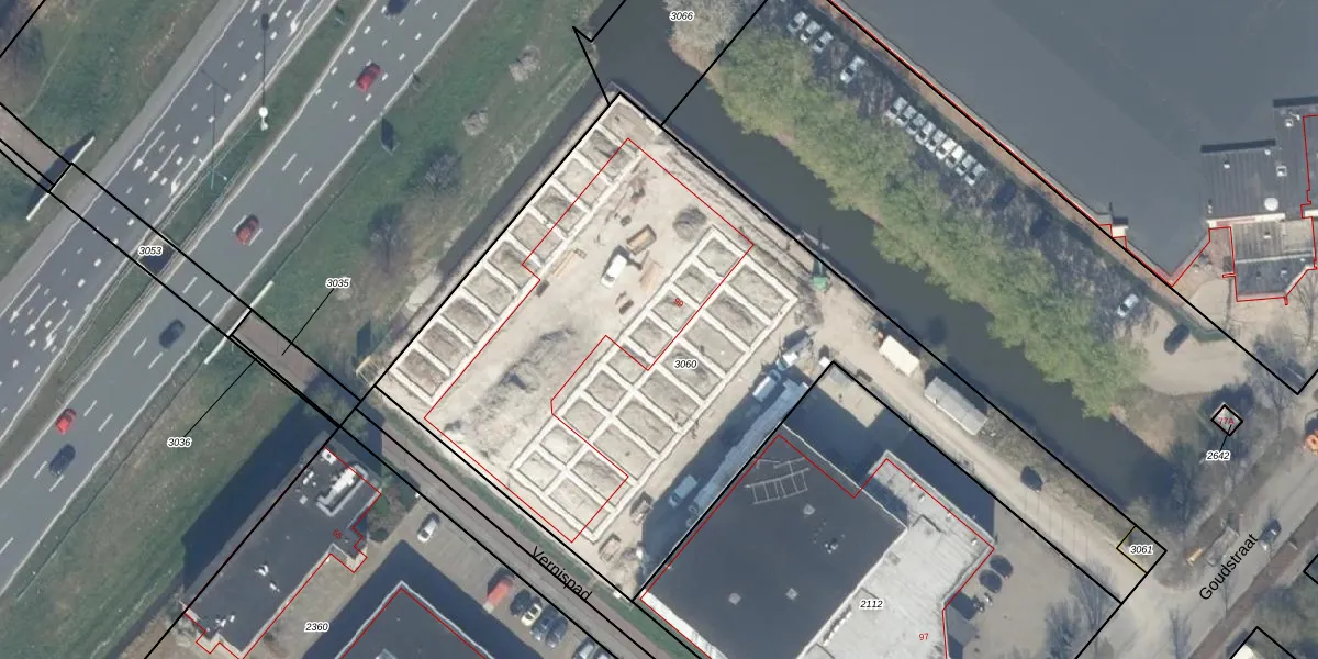 Het perceel waarop Goudstraat 99-14 staat heeft een oppervlakte van 3532 m². Dit is een zeer groot perceel. De perceeloppervlakte wordt geregistreerd door het Kadaster. Gedetailleerde informatie over de maten van dit perceel kunt u vinden in het rapport Kadastrale kaart met maatvoering van Goudstraat 99-14.