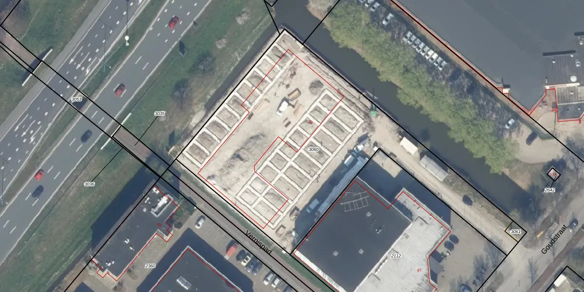 Het perceel waarop Goudstraat 99-15 staat heeft een oppervlakte van 3532 m². Dit is een zeer groot perceel. De perceeloppervlakte wordt geregistreerd door het Kadaster. Gedetailleerde informatie over de maten van dit perceel kunt u vinden in het rapport Kadastrale kaart met maatvoering van Goudstraat 99-15.