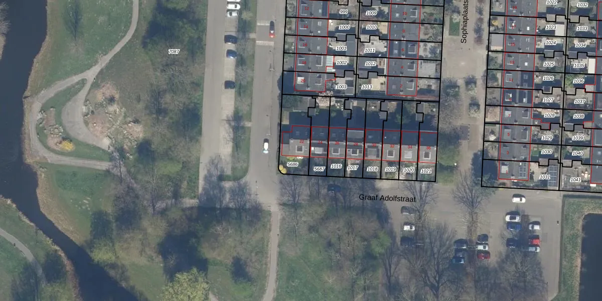 Gebruik de zoekbalk of klik op een perceel voor informatie over de adressen binnen dit perceel.