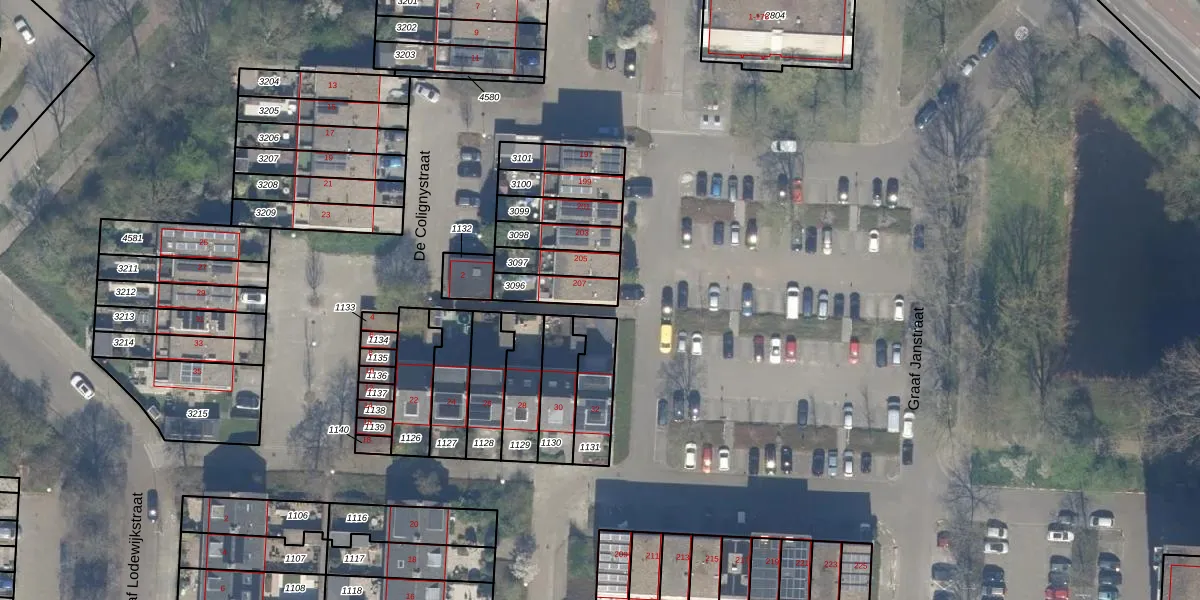 Gebruik de zoekbalk of klik op een perceel voor informatie over de adressen binnen dit perceel.