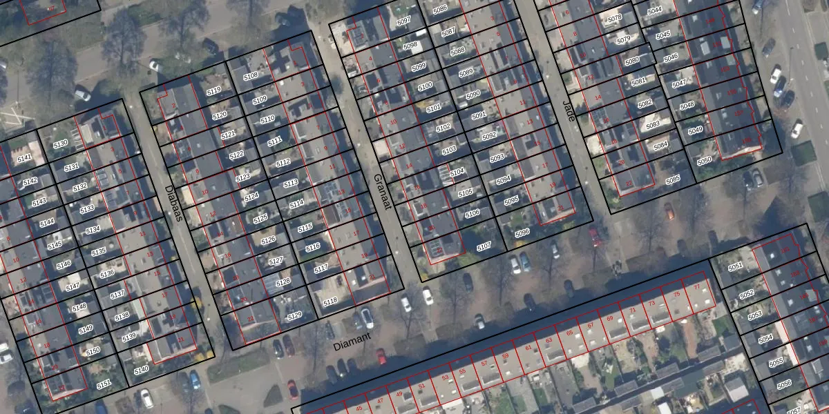 Het perceel waarop Granaat 18 staat heeft een oppervlakte van 119 m². Dit is een middelgroot perceel. De perceeloppervlakte wordt geregistreerd door het Kadaster. Gedetailleerde informatie over de maten van dit perceel kunt u vinden in het rapport Kadastrale kaart met maatvoering van Granaat 18.
