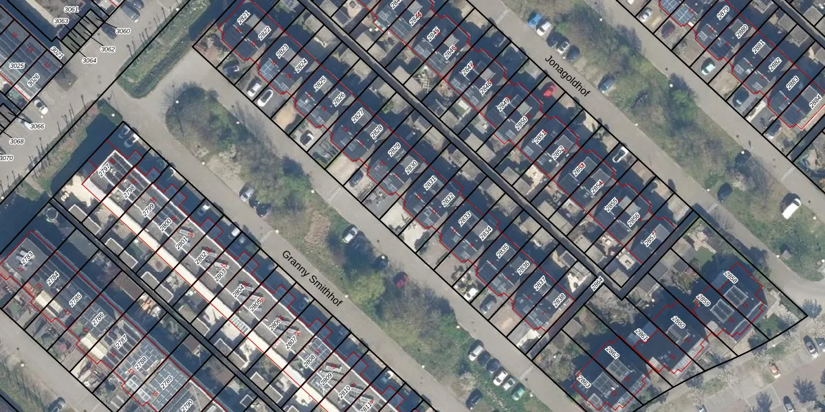 Gebruik de zoekbalk of klik op een perceel voor informatie over de adressen binnen dit perceel.