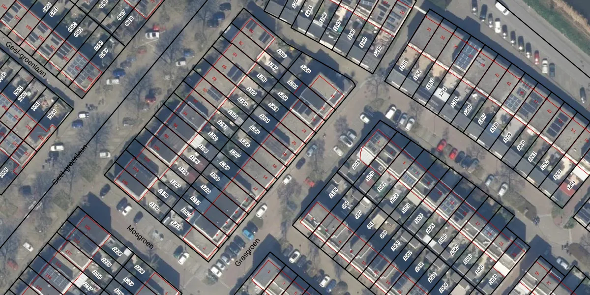 Het perceel waarop Grasgroen 20 staat heeft een oppervlakte van 108 m². Dit is een middelgroot perceel. De perceeloppervlakte wordt geregistreerd door het Kadaster. Gedetailleerde informatie over de maten van dit perceel kunt u vinden in het rapport Kadastrale kaart met maatvoering van Grasgroen 20.