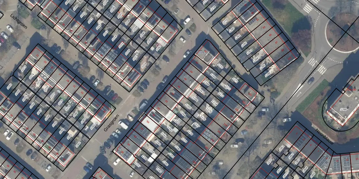 Gebruik de zoekbalk of klik op een perceel voor informatie over de adressen binnen dit perceel.
