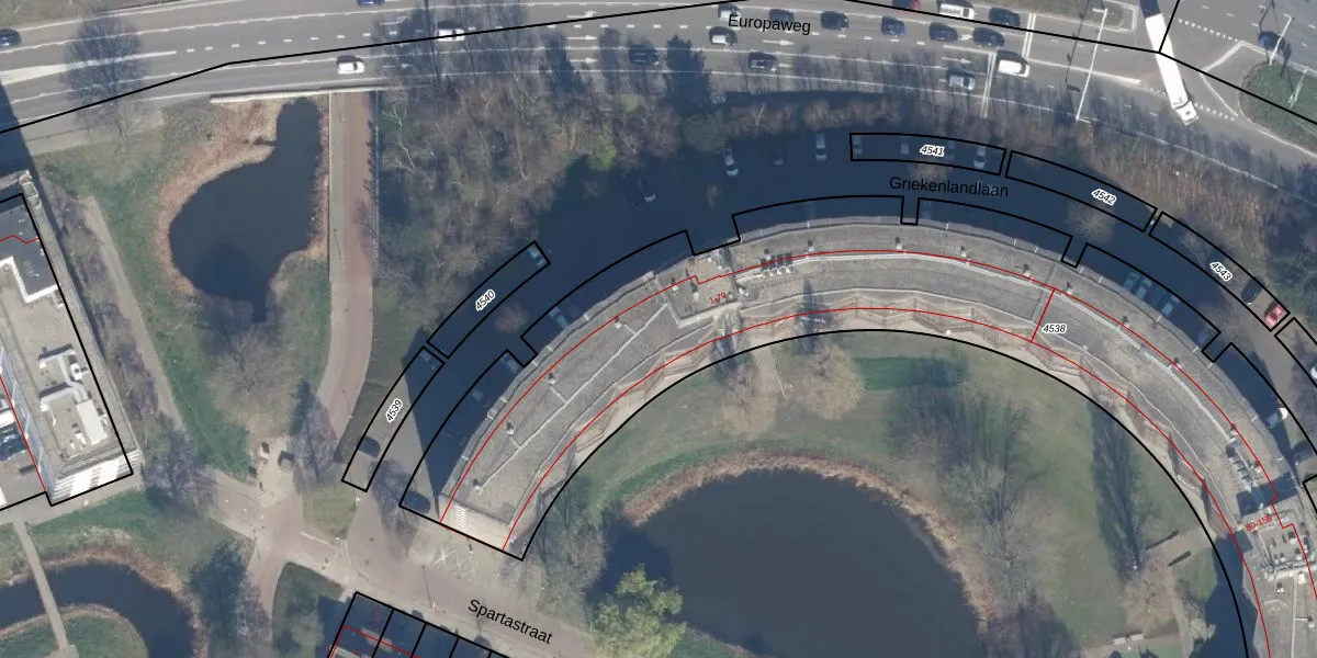 Het perceel waarop Griekenlandlaan 39 staat heeft een oppervlakte van 4255 m². Dit is een zeer groot perceel. De perceeloppervlakte wordt geregistreerd door het Kadaster. Gedetailleerde informatie over de maten van dit perceel kunt u vinden in het rapport Kadastrale kaart met maatvoering van Griekenlandlaan 39.