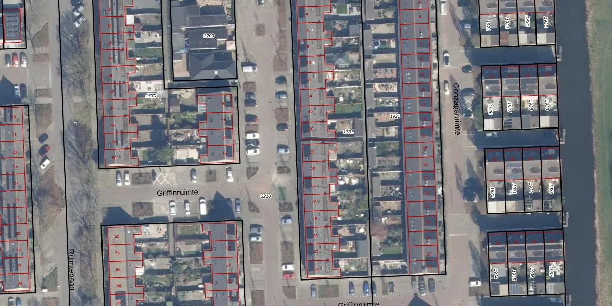 Het perceel waarop Griffinruimte 20 staat heeft een oppervlakte van 2346 m². Dit is een zeer groot perceel. De perceeloppervlakte wordt geregistreerd door het Kadaster. Gedetailleerde informatie over de maten van dit perceel kunt u vinden in het rapport Kadastrale kaart met maatvoering van Griffinruimte 20.