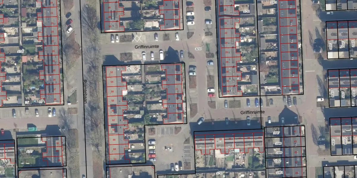 Het perceel waarop Griffinruimte 21 staat heeft een oppervlakte van 2044 m². Dit is een zeer groot perceel. De perceeloppervlakte wordt geregistreerd door het Kadaster. Gedetailleerde informatie over de maten van dit perceel kunt u vinden in het rapport Kadastrale kaart met maatvoering van Griffinruimte 21.