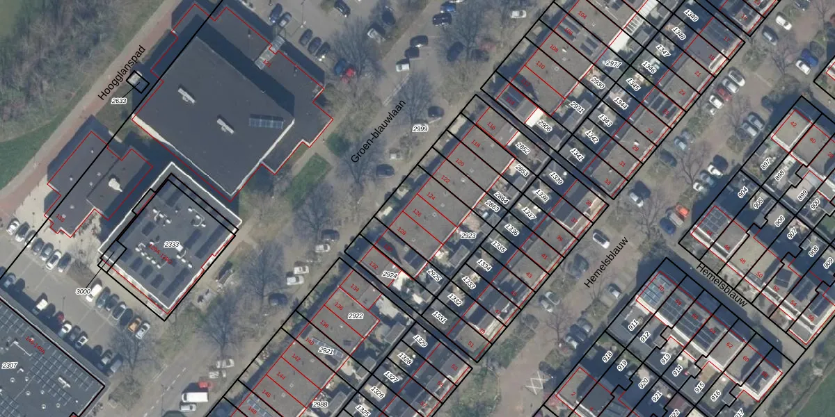 Het perceel waarop Groen-blauwlaan 126 staat heeft een oppervlakte van 387 m². Dit is een groot perceel. De perceeloppervlakte wordt geregistreerd door het Kadaster. Gedetailleerde informatie over de maten van dit perceel kunt u vinden in het rapport Kadastrale kaart met maatvoering van Groen-blauwlaan 126.