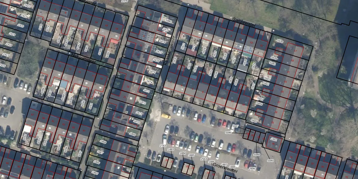 Gebruik de zoekbalk of klik op een perceel voor informatie over de adressen binnen dit perceel.