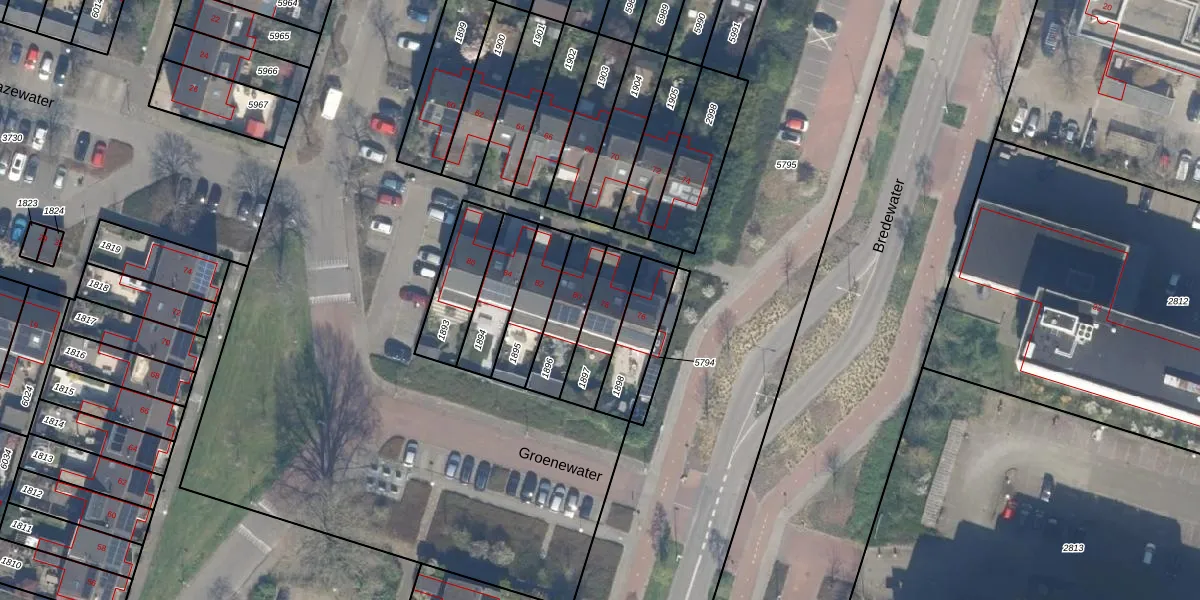 Gebruik de zoekbalk of klik op een perceel voor informatie over de adressen binnen dit perceel.