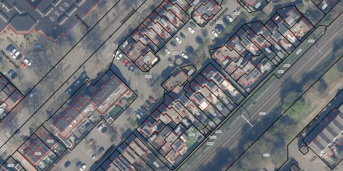 Gebruik de zoekbalk of klik op een perceel voor informatie over de adressen binnen dit perceel.