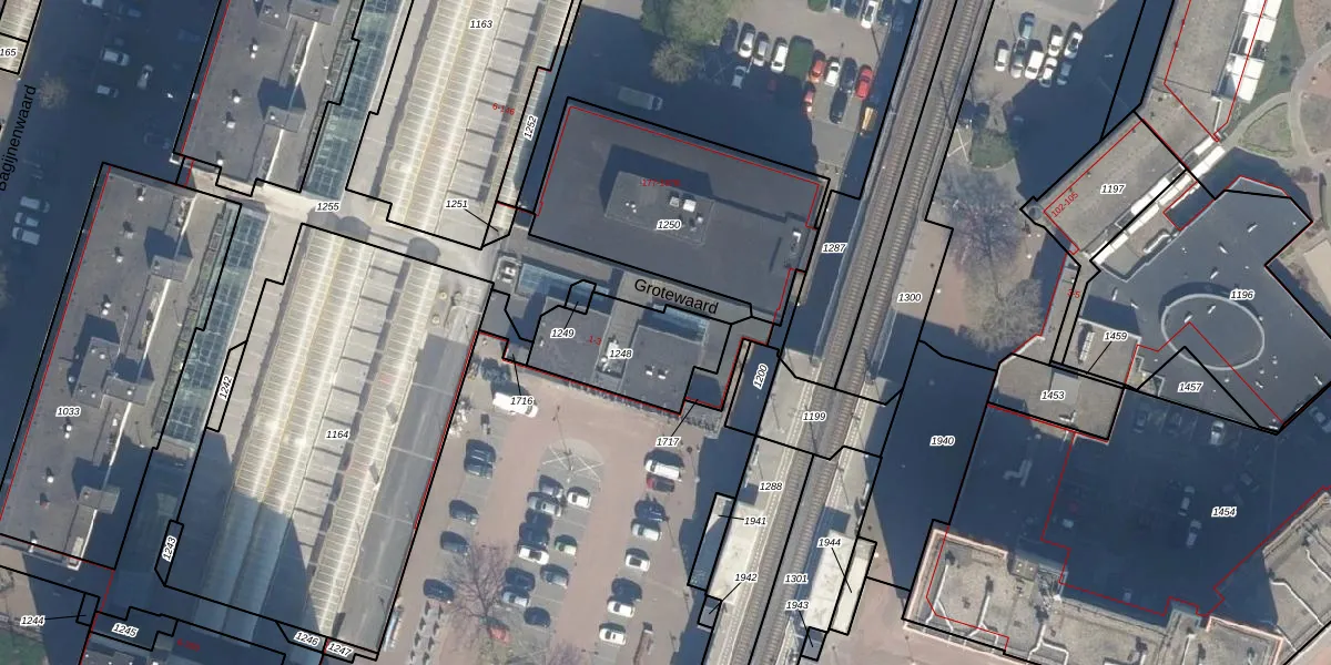 Het perceel waarop Grotewaard 13-J staat heeft een oppervlakte van 346 m². Dit is een groot perceel. De perceeloppervlakte wordt geregistreerd door het Kadaster. Gedetailleerde informatie over de maten van dit perceel kunt u vinden in het rapport Kadastrale kaart met maatvoering van Grotewaard 13-J.