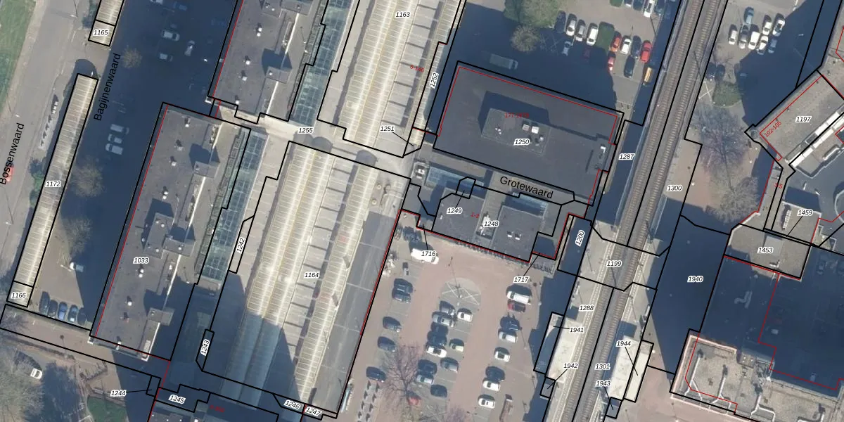 Het perceel waarop Grotewaard 5-E staat heeft een oppervlakte van 39 m². Dit is een klein perceel. De perceeloppervlakte wordt geregistreerd door het Kadaster. Gedetailleerde informatie over de maten van dit perceel kunt u vinden in het rapport Kadastrale kaart met maatvoering van Grotewaard 5-E.