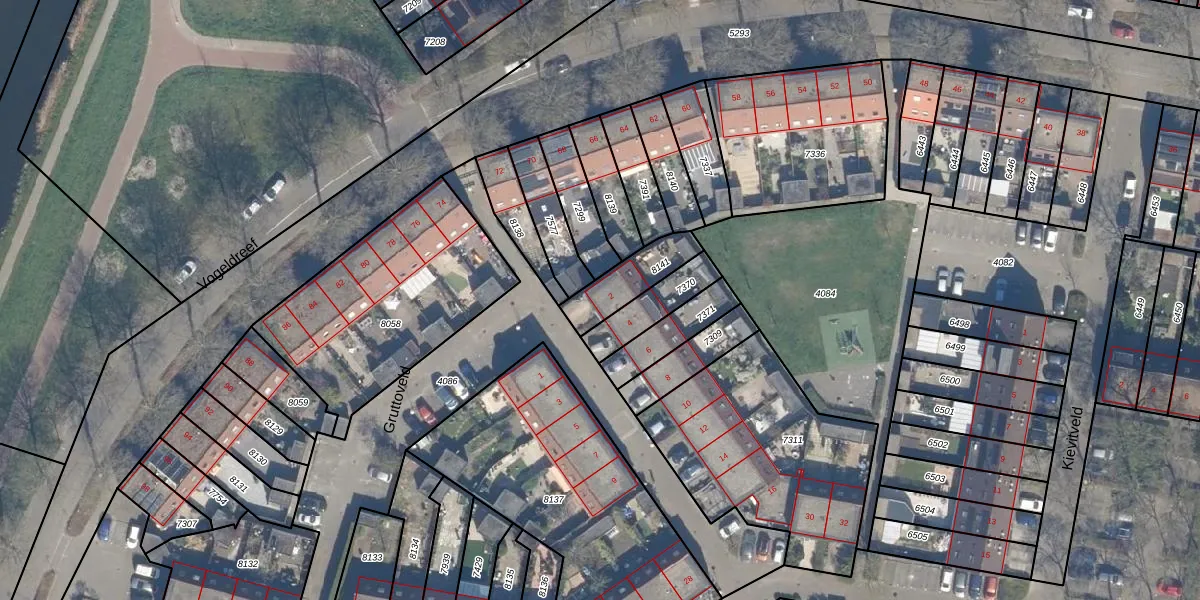 Het perceel waarop Gruttoveld 2 staat heeft een oppervlakte van 151 m². Dit is een middelgroot perceel. De perceeloppervlakte wordt geregistreerd door het Kadaster. Gedetailleerde informatie over de maten van dit perceel kunt u vinden in het rapport Kadastrale kaart met maatvoering van Gruttoveld 2.