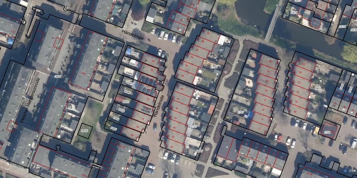 Het perceel waarop Händelrode 40 staat heeft een oppervlakte van 903 m². Dit is een groot perceel. De perceeloppervlakte wordt geregistreerd door het Kadaster. Gedetailleerde informatie over de maten van dit perceel kunt u vinden in het rapport Kadastrale kaart met maatvoering van Händelrode 40.