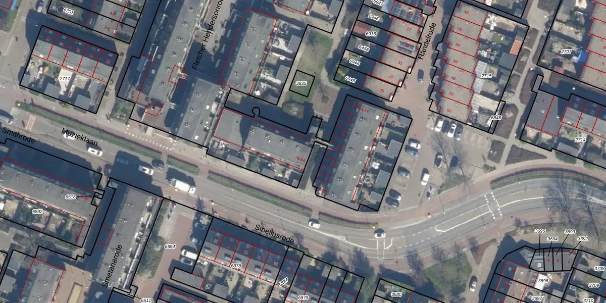 Het perceel waarop Händelrode 78 staat heeft een oppervlakte van 6820 m². Dit is een zeer groot perceel. De perceeloppervlakte wordt geregistreerd door het Kadaster. Gedetailleerde informatie over de maten van dit perceel kunt u vinden in het rapport Kadastrale kaart met maatvoering van Händelrode 78.