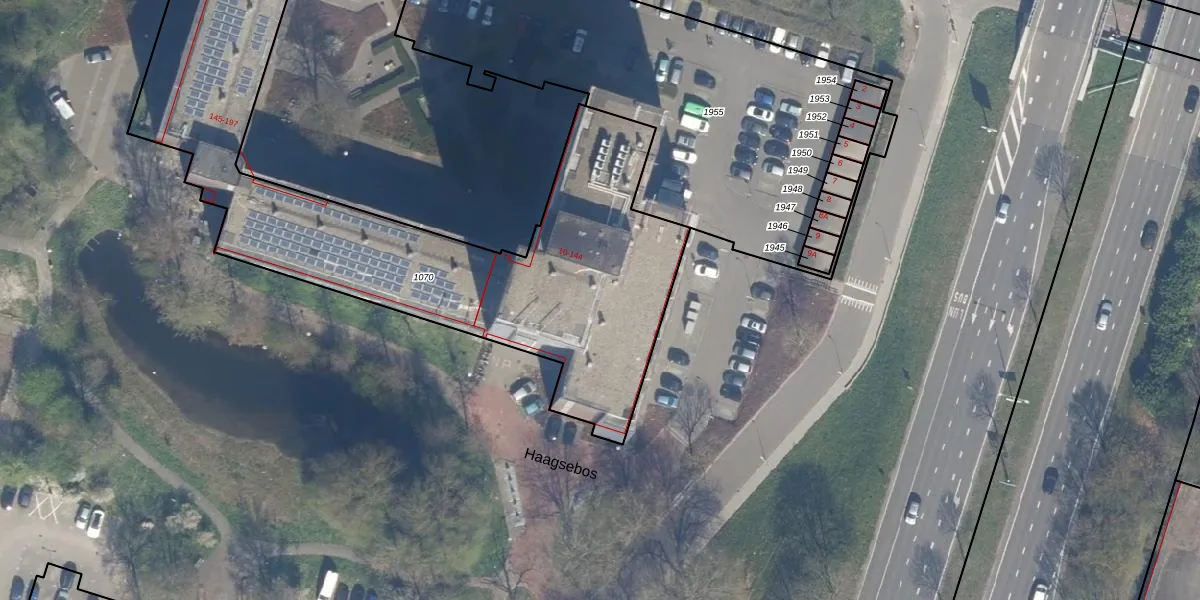 Het perceel waarop Haagsebos 61 staat heeft een oppervlakte van 2504 m². Dit is een zeer groot perceel. De perceeloppervlakte wordt geregistreerd door het Kadaster. Gedetailleerde informatie over de maten van dit perceel kunt u vinden in het rapport Kadastrale kaart met maatvoering van Haagsebos 61.