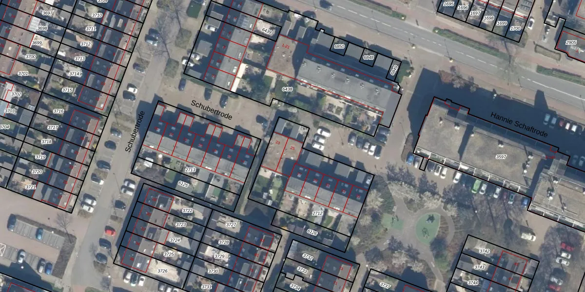 Hannie Schaftrode 25 is gelegen op kadastraal perceel ZTM00C2712. Deze kadastrale aanduiding is uniek en wordt gebruikt door het Kadaster om eigendomsrechten en andere zakelijke rechten vast te leggen. Het perceel maakt onderdeel uit van de kadastrale gemeente Zoetermeer.