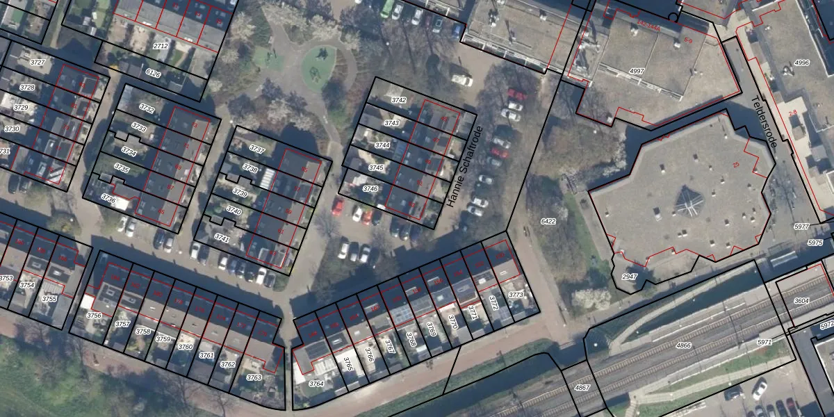 Gebruik de zoekbalk of klik op een perceel voor informatie over de adressen binnen dit perceel.