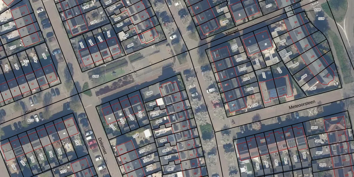 Het perceel waarop Hardsteen 47 staat heeft een oppervlakte van 215 m². Dit is een middelgroot perceel. De perceeloppervlakte wordt geregistreerd door het Kadaster. Gedetailleerde informatie over de maten van dit perceel kunt u vinden in het rapport Kadastrale kaart met maatvoering van Hardsteen 47.