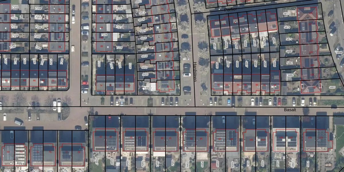 Gebruik de zoekbalk of klik op een perceel voor informatie over de adressen binnen dit perceel.