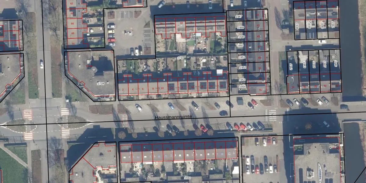 Het perceel waarop Haussmannruimte 14 staat heeft een oppervlakte van 2292 m². Dit is een zeer groot perceel. De perceeloppervlakte wordt geregistreerd door het Kadaster. Gedetailleerde informatie over de maten van dit perceel kunt u vinden in het rapport Kadastrale kaart met maatvoering van Haussmannruimte 14.
