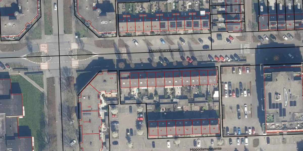 Het perceel waarop Haussmannruimte 17 staat heeft een oppervlakte van 2600 m². Dit is een zeer groot perceel. De perceeloppervlakte wordt geregistreerd door het Kadaster. Gedetailleerde informatie over de maten van dit perceel kunt u vinden in het rapport Kadastrale kaart met maatvoering van Haussmannruimte 17.