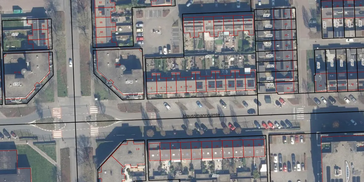 Het perceel waarop Haussmannruimte 8 staat heeft een oppervlakte van 2292 m². Dit is een zeer groot perceel. De perceeloppervlakte wordt geregistreerd door het Kadaster. Gedetailleerde informatie over de maten van dit perceel kunt u vinden in het rapport Kadastrale kaart met maatvoering van Haussmannruimte 8.