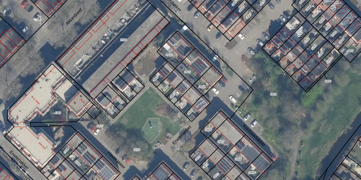 Het perceel waarop Haverakker 13 staat heeft een oppervlakte van 84 m². Dit is een klein perceel. De perceeloppervlakte wordt geregistreerd door het Kadaster. Gedetailleerde informatie over de maten van dit perceel kunt u vinden in het rapport Kadastrale kaart met maatvoering van Haverakker 13.