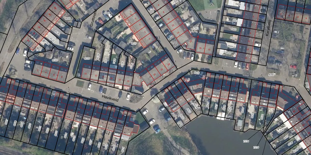 Het perceel waarop Havikveld 24 staat heeft een oppervlakte van 1280 m². Dit is een zeer groot perceel. De perceeloppervlakte wordt geregistreerd door het Kadaster. Gedetailleerde informatie over de maten van dit perceel kunt u vinden in het rapport Kadastrale kaart met maatvoering van Havikveld 24.