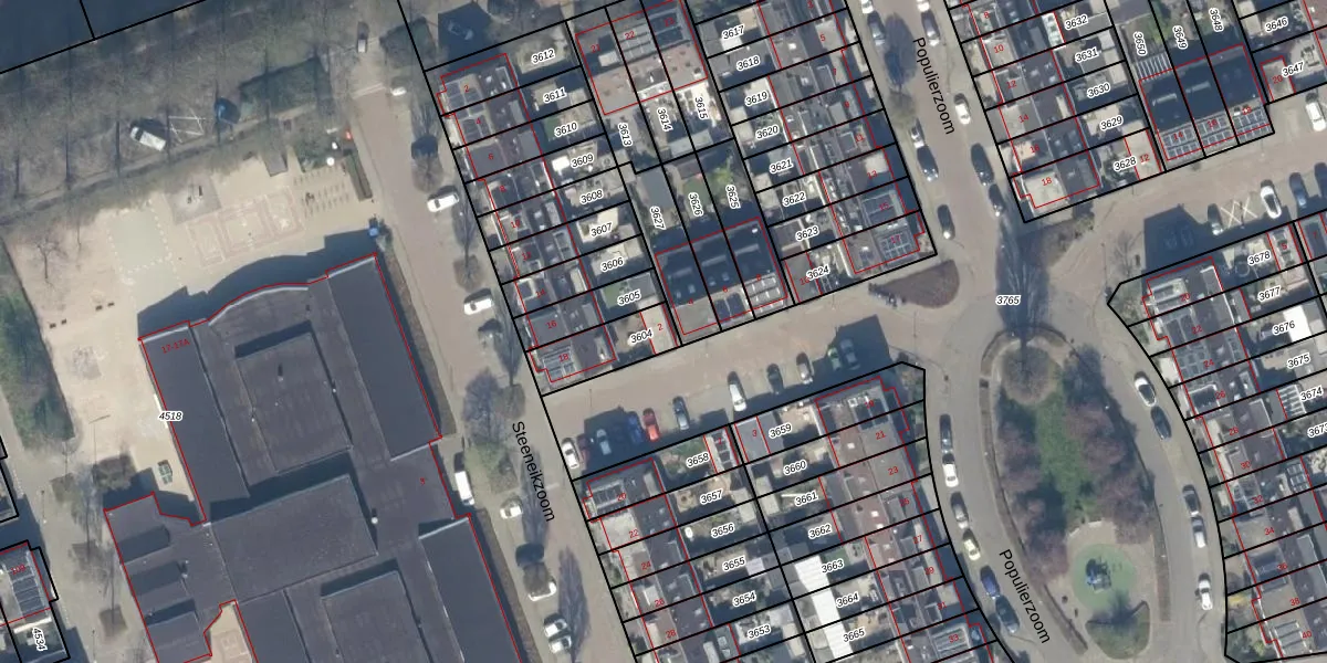 Het adres is gelegen op perceel 3604 in de sectie E en de kadastrale gemeente Zoetermeer. De kadastrale aanduiding is aldus ZTM00-E-3604. Het perceel is kleiner dan gemiddeld in Zoetermeer. Het perceel is 161 m² groot, terwijl het gemiddelde ligt op 1511,23 m². Het grootste perceel in de kadastrale gemeente is 1,16 km². Het kleinste perceel heeft een oppervlakte van 0 m². Op het perceel liggen in totaal 2 adressen. In de Basisregistratie Kadaster (BRK) werden de grenzen van het perceel geregistreerd op 06-02-1998.