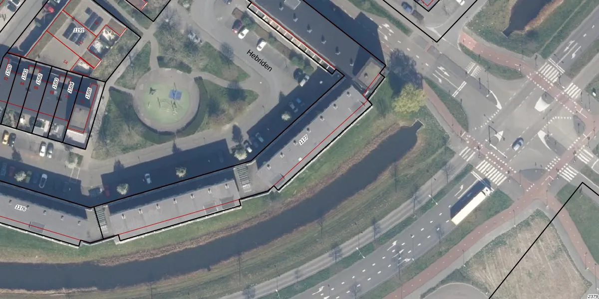 Het perceel waarop Hebriden 211 staat heeft een oppervlakte van 1983 m². Dit is een zeer groot perceel. De perceeloppervlakte wordt geregistreerd door het Kadaster. Gedetailleerde informatie over de maten van dit perceel kunt u vinden in het rapport Kadastrale kaart met maatvoering van Hebriden 211.