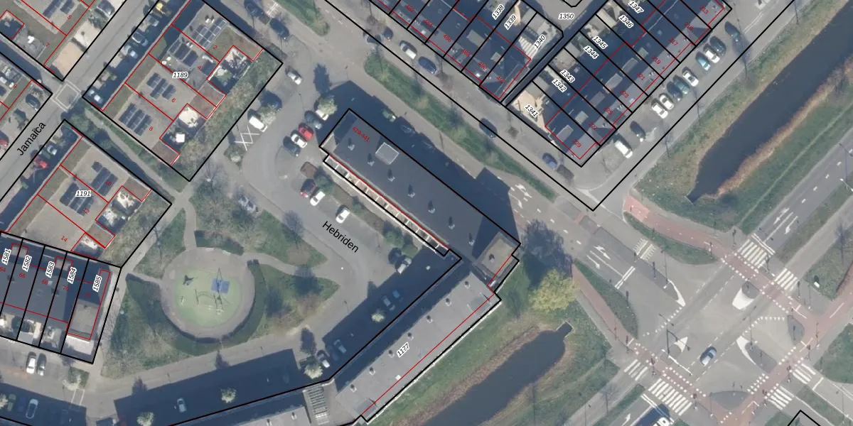 Het perceel waarop Hebriden 227 staat heeft een oppervlakte van 1983 m². Dit is een zeer groot perceel. De perceeloppervlakte wordt geregistreerd door het Kadaster. Gedetailleerde informatie over de maten van dit perceel kunt u vinden in het rapport Kadastrale kaart met maatvoering van Hebriden 227.