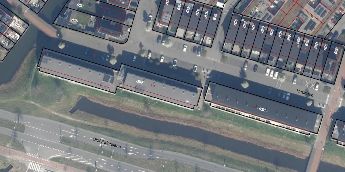 Het perceel waarop Hebriden 37 staat heeft een oppervlakte van 1277 m². Dit is een zeer groot perceel. De perceeloppervlakte wordt geregistreerd door het Kadaster. Gedetailleerde informatie over de maten van dit perceel kunt u vinden in het rapport Kadastrale kaart met maatvoering van Hebriden 37.