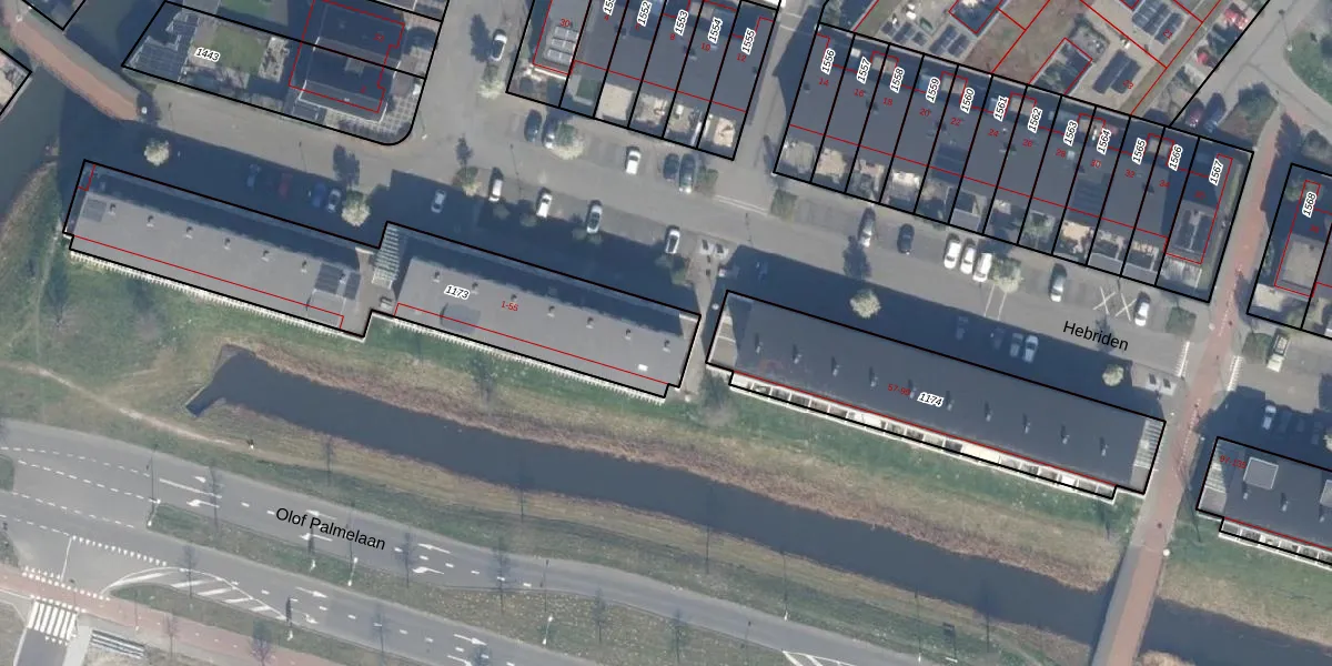 Het perceel waarop Hebriden 41 staat heeft een oppervlakte van 1277 m². Dit is een zeer groot perceel. De perceeloppervlakte wordt geregistreerd door het Kadaster. Gedetailleerde informatie over de maten van dit perceel kunt u vinden in het rapport Kadastrale kaart met maatvoering van Hebriden 41.